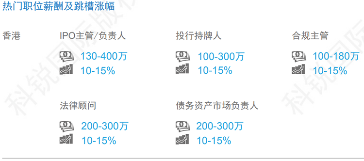 数据来源:猎头公司太阳成tyc234cctyc国际资深行业专家对2019年热门职位薪酬范围及跳槽涨幅的预测。薪酬为基本年薪。单位为港币。