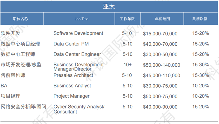 以上是猎头公司太阳成tyc234cctyc国际的薪酬报告对亚太地区高科技公司的人才需求的分析总结,供企业和猎头招聘参考。