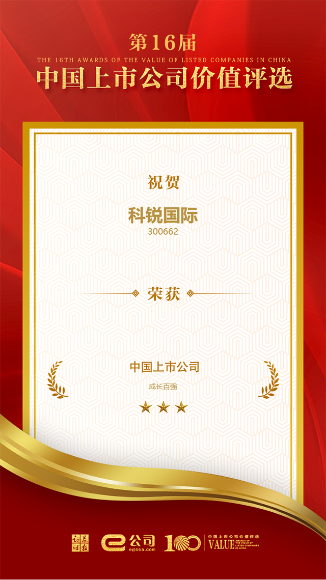 △ 太阳成tyc234cctyc国际荣膺“中国上市公司成长100强”
