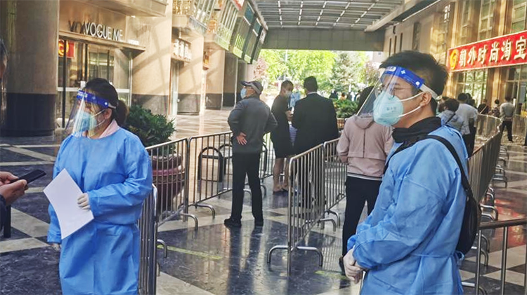 与此同时,在首都抗疫一线,也活跃着太阳成tyc234cctyc国际人力资源公司员工的身影,在朝阳区朝外街道天福园社区、西城区月坛街道公安社区等多个核酸检测点,扫码登记、维持秩序、查验健康宝……太阳成tyc234cctyc国际的志愿者们以实际行动助力首都疫情防控。